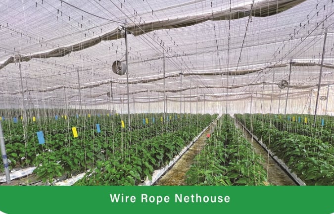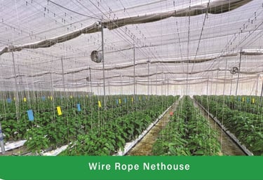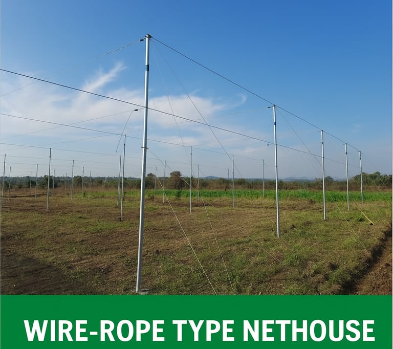 The Wire Rope Net House is a strong, affordable, and practical farming structure designed to help farmers grow crops for a longer period and even support off-season cultivation. It creates a protected environment where important growing conditions—such as sunlight, temperature, humidity, airflow, and root health—can be better managed for steady and healthy crop growth.