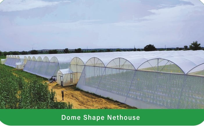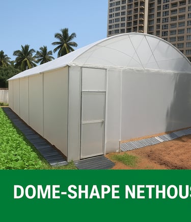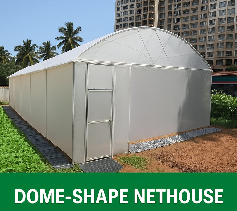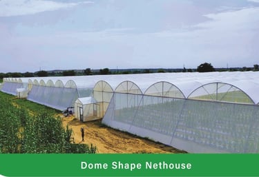 The Dome Shape Net House is covered with high-quality shade nets available in 35%, 50%, 75%, and 90% shading options. Farmers can select the right shade level based on: