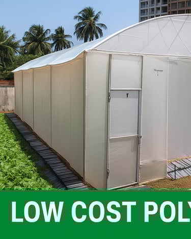 The Low-Cost Poly House is a practical and affordable solution for farmers who want better crop quality and higher yields without heavy investment. Designed with a simple yet effective naturally ventilated structure, it creates a healthy growing environment for vegetables, flowers, and medicinal plants. Because of its low cost, easy maintenance, and reliable performance, it has become a popular choice among small, medium, and large farmers across India.