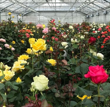 Shade net houses that protect crops while optimizing sunlight and airflow.